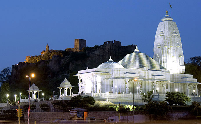 A modern catholic approach to religion is carved on the white marbles and architecture of Laksmi Narayan Temple. It is the gift of the Birlas [leading industrialists of India] to the pink city, hence the name Birla Temple. Placed at the foot of the Moti Dongri [the Pearl hill], the impressive view of the replica of Scottish castle called as Moti Doongri Palace topping the hillock and the calm surrounding alongside the busy road, makes it a cool place to hang out, and is visited especially by the locals.