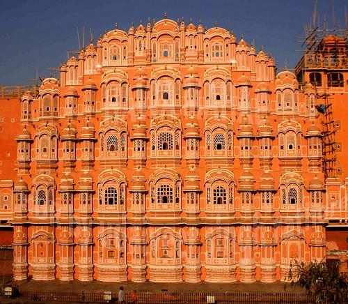 Jaipur is popularly known as the "Pink city" and is the capital of Rajasthan. The city constructed by Maharaja Sawai Jai Singh II. The pink color was used at the time of making to create an impression of red sandstone buildings of Mughal cities - and repainted in 1876, during the visit of the Prince of Wales.