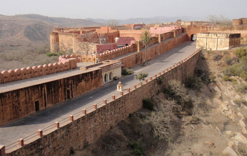 This comparatively small but sturdy fort at Jaipur was built on a hilltop by Sawai Jai Singh in 1734 to strengthen the defense of Amber. The fort offers a picturesque view of Jaipur. The view of sunset from this place is especially spectacular. Inside the fort are 9 apartments, one for each of the 9 queens of the king. They are arranged in such a manner that the king could visit any of his queens without the knowledge of the other.