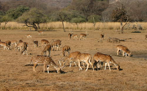 Apart from tigers, Ranthambore National Park is home to a bewildering variety of animal species like Leopards, Striped Hyenas, Sambar, Chinkara, Black Bucks, Macaques, Langurs, Squirrels, Rufoustailed Hare, Small Indian Civets, Wild Cats to name just a few of the resident species that have made Ranthambore their home. The reptile species is no less varied with Indian Chameleon, Indian Python, King Cobra, Desert Monitor Lizard, Vipers to name just a few.